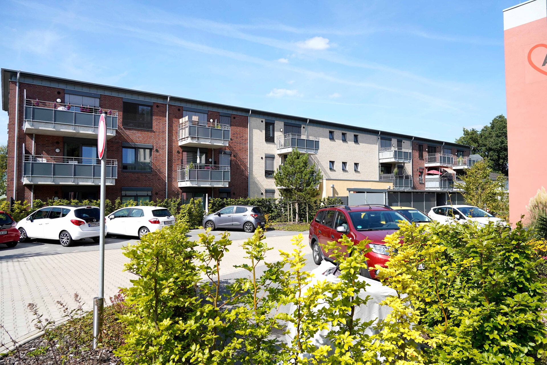 Die Wohnungen mit Wohn- und Schlafraum, Küche, Badezimmer und Balkon oder Terrasse sind z. T. so angeordnet, dass Senior*innen in guter Nachbarschaft die Sicherheit und Geborgenheit eines Altenwohnzentrums mit einem selbstständigen Leben verbinden können.