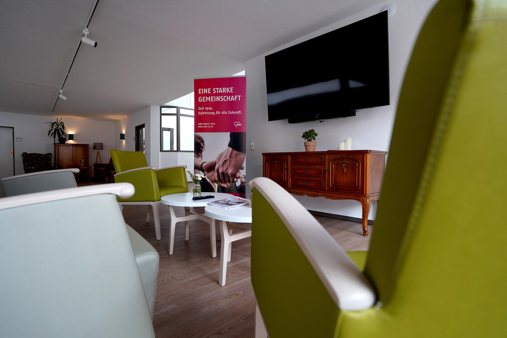 Übrigens: Unser Altenwohnzentrum ist auch energetisch ganz auf der Höhe der Zeit. Im Zuge der großen Sanierung haben wir nämlich nicht nur unser Zimmerangebot erneuert und erweitert sowie der Fassade einen frischen Anstrich verpasst, sondern auch alle zur Energieeinsparung notwenigen Maßnahmen ergriffen. So sind wir hier in Schortens sehr gut auf die Zukunft vorbereitet.